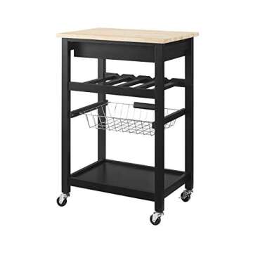 Linon Home Decor Pascal Kitchen Cart - Black with Wood Top