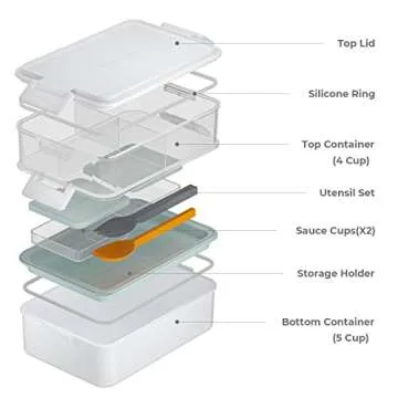 linoroso Stackable Bento Box Adult Lunch Box | Meet All You On-the-Go Needs for Food, Salad and Snack Box, Premium Bento Lunch Box for Adults Include Utensil Set, Dressing Containers - Chalk White