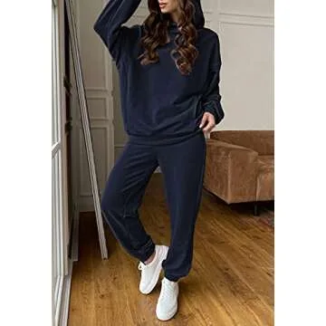 Show moreElevate your casual wear with the Linsery Women Hoodies Tracksuit Sweatshirt and Sweatpants Matching Jogger Set. Designed for the modern woman, this two-piece matching outfit combines style, comfort, and functionality, making it an essential addition to any wardrobe. Crafted from a cozy blend of soft fabrics, this tracksuit set features a luxurious navy blue color that exudes sophistication while remaining versatile enough for everyday outings. The oversized hoodie offers a relaxed fit, allowing for easy movement and layering during chillier days, while the jogger sweatpants come with elastic bands that provide a snug yet comfortable fit. Whether you're lounging at home or heading to the gym, this sweat set is the perfect companion for your daily activities.