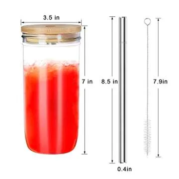 LINSHRY Reusable Boba Cup Bubble Tea Cup 2 Pack, 24oz Mason Jar with Bamboo Lid and Stainless Straw, Wide Mouth Smoothie Cup Glass Tumbler for Iced Coffee Large Pearl Juices