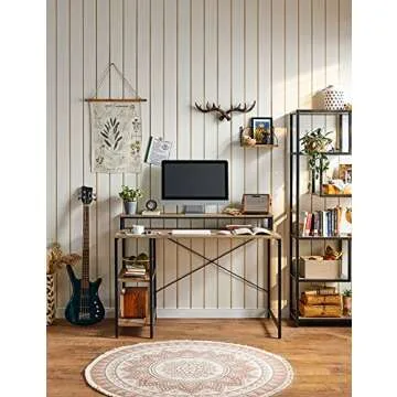 The desk's versatility extends to its impressive open shelves and monitor stand that are perfect for keeping your essentials organized and your workspace tidy. You can easily position the open shelf to either side, depending on your needs, and even remove the middle shelf for extra space for larger computers. With a height of 34 inches, it's tailored for comfort, allowing your legs to stretch freely as you work. Say goodbye to cluttered tabletops and hello to a more productive environment!