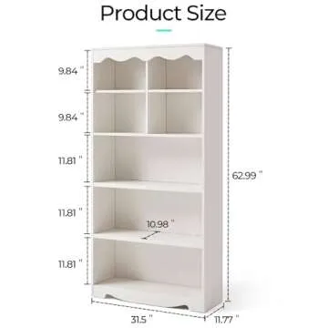 Show moreIntroducing the LINSY HOME 5-Tier Bookshelf and Bookcase, your ultimate solution for stylish and efficient storage. Standing proudly at 63 inches tall, this freestanding bookcase boasts a captivating Modern Farmhouse Style with its smooth lines and rich wood grain surface. The elegant wavy trim adds sophistication, making it a perfect centerpiece for any room. Thoughtfully designed, the bookshelf features four open compartments on top that are perfect for showcasing artworks, decorative pieces, or cherished photo frames. The three additional open shelves at the bottom offer easy access to office supplies, files, or your book collection, keeping everything organized and within reach, enhancing both functionality and aesthetics in your space.