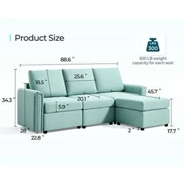LINSY HOME Modular Sectional Sofa, Convertible L Shaped Sofa Couch with Storage, Modular Sectionals with Ottomans, Small Sofa Couch with Chaise for Small Space, Living Room, Teal