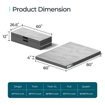 LINSY LIVING Folding Mattress, 4 Inch Trifold Mattress with Soft Cover, Queen Memory Foam Mattess, Foldable, Portable, Remoable&Washable Cover, Easy Storage Sofa Bed, Queen Size, 80" * 60", Grey