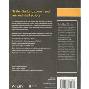 Show moreThe Linux Command Line and Shell Scripting Bible is an essential reference for anyone who wants to master the power of Linux. Whether you're a complete beginner looking to navigate the Linux landscape or an experienced user wishing to sharpen your command line skills, this book is your ultimate companion. With extensive coverage on a wide range of topics, this third edition embraces the latest advancements in Linux technology, making it more relevant than ever. Expect clear explanations, practical examples, and invaluable tips that can transform your scripting ability.