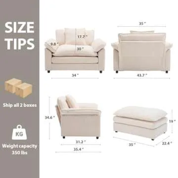 Linyuanwai Modern Oversized Chair Set of 2, Comfy Chenille Accent Chair Large Upholstered Armchair with Extra Thick and Deep Seat Lounge Chair for Living Room,Bedroom,Apartment, Beige