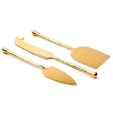 LINZOM Cheese Knife Set, 18/10 Stainless Steel, Hand Forged, Gold, Teardrop Edge, Set of 3