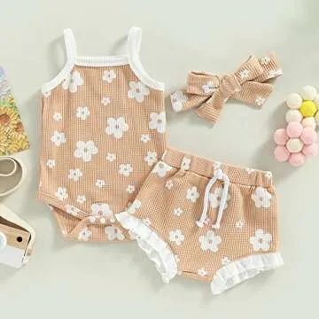 Show moreIntroducing the LIOMENGZI Baby Girl Summer 3Pcs Clothes Set—the quintessential outfit for your little princess! Expertly crafted from high-quality cotton, this ultra-soft and comfortable set is designed with your baby’s sensitive skin in mind. The darling floral spaghetti straps and charming ruffle shorts not only make your baby girl look adorable but also allow for easy dressing and undressing, promoting independence as she grows. Whether it’s a sunny day at the park or a special family gathering, this outfit ensures your baby is both stylish and comfortable.