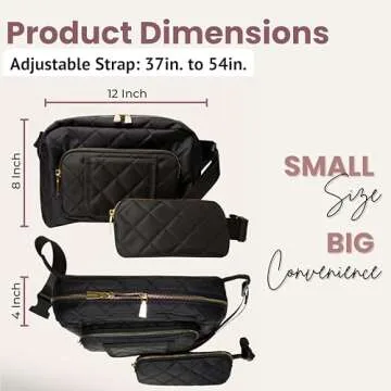 Weighing just 1lb6oz and measuring L12xW4xH8 inches, this lightweight and compact bag ensures that you'll never feel weighed down while carrying all your essentials. With its ergonomic adjustable strap that ranges from 37 to 54 inches, you can wear it in various fashionable styles—crossbody, fanny pack, or belt bag. Say goodbye to shoulder strain and hello to comfort!
