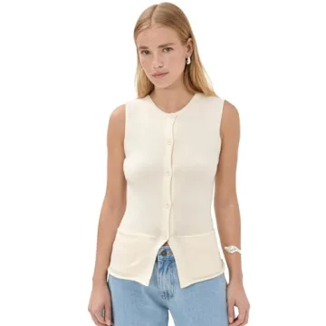 Show moreIntroducing the Lioness Women's Kourt Vest in a chic ivory color, perfect for elevating your wardrobe with a hint of elegance and versatility. Crafted from a premium lightweight knit fabric, this sleeveless vest combines comfort and style seamlessly, making it an essential piece for layering in any season. The ribbed crew neck adds a modern twist, while the welt front pockets offer both functionality and an added touch of sophistication. Whether dressed up with tailored trousers or down with your favorite jeans, this vest is an ideal choice for every occasion.