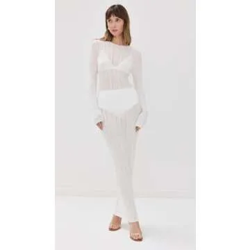 Runs true to size. , Designed with a slim fit and maxi length. Sleeves are cut with an exaggerated length. Stretchy ribbed knit has a light and delicate hand; please handle with care. Skin-tone or black undergarments are recommended due to dress sheerness.