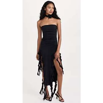 Show moreDiscover the epitome of style and comfort with the Lioness Women's Rendezvous Strapless Dress in a sleek licorice black fabric. This stunning dress is crafted from a lightweight jersey, ensuring it feels soft against your skin, making it perfect for all-day wear. The strapless silhouette emphasizes your elegant neckline and shoulders, complemented beautifully by side slits that allow for graceful movement. The exquisite ruffle trim adds a touch of femininity and flair, making this dress an eye-catching choice for any occasion.