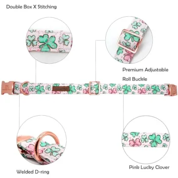Lionheart Glory St. Patrick's Day Dog Collar - Pink Clover Design, Adjustable, Durable