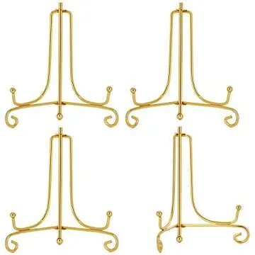 LIONWEI LIONWELI 4 Inch Gold Iron Plate Stand Holder Easel Display Stand for Plate?Picture?Photo and More,4 pcs.