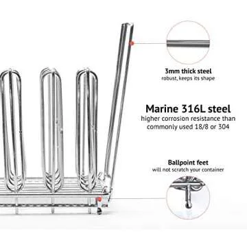Crafted from 316L Marine Grade Stainless Steel, the LIPAVI Sous Vide Rack not only promises durability but also ensures it remains rust-free, even during prolonged cooking sessions. The exceptional quality of materials used means you can trust this rack to deliver consistent performance day in and day out. Plus, its adjustable and collapsible design means that storing it when not in use is a breeze—saving precious space in your kitchen.
