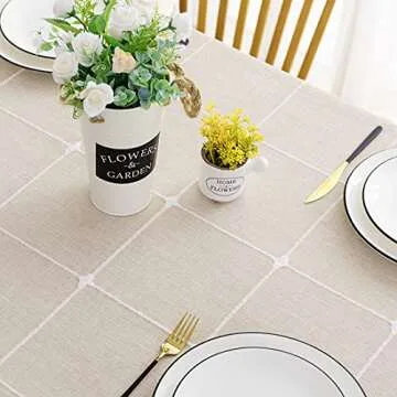 Lipo Waterproof Tablecloth Embroidery Burlap Linen with Tassel - Heavy Duty Fabric Wrinkle Free Rectangle Table Cloth for Tables Rustic Farmhouse Outdoor Tablecloths for Party Kitchen Dining