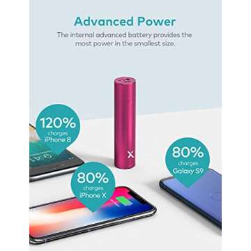 Lipstick Charger 3350mAh Xcentz, Compact External Battery Premium Aluminum with Flashlight Pocket Portable Charger Power Bank Phone Charger for iPhone, Samsung Galaxy, Other Android Phone - Red