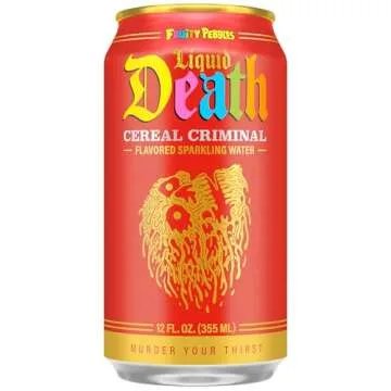 Liquid Death, Cereal Criminal, Fruity Pebbles-Flavored Sparkling Water, 12-Pack (12oz Cans), Low Calorie & No Artificial Sweeteners