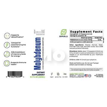 Show moreUnlock the Power of Liquid Ionic Molybdenum - Experience the unrivaled benefits of our premium Liquid Ionic Molybdenum from ZEMVELO by MINERALIFE. This high-quality liquid supplement simply requires a 2.5ml (1/2 teaspoon) dosage to deliver an astonishing 167% of your daily value for molybdenum. Known for its role in various bodily functions, molybdenum plays a crucial part in energy production, healthy metabolism, and the detoxification process within your body. With a generous 96-day supply in every bottle, you’re not only investing in your health but also your peace of mind, knowing you have a reliable source of trace minerals at your fingertips.