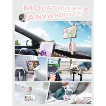 Show more Introducing the ultimate travel companion for tech-savvy explorers: the LISEN MagSafe Airplane Phone Holder! This thoughtful pink accessory is tailored for individuals who cherish style as much as functionality, ensuring your smartphone stays secure during flights or on-the-go adventures. With its rapid 0.1-second phone securing capability, this stand relieves the frustration associated with traditional phone holders, allowing for stress-free accessibility. Whether you're vlogging, navigating, or simply enjoying your favorite movies on a journey, this phone holder has you covered.