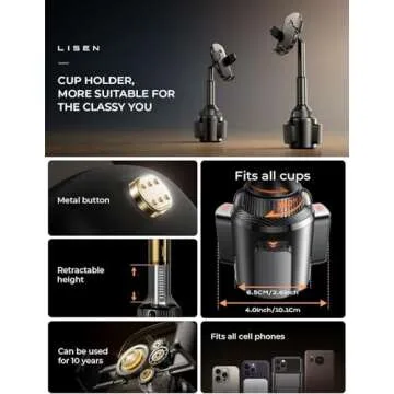 LISEN Cup Holder Car Phone Holder No Shaking Cup Phone Holder for Car Mount Rock Solid Car Phone Holder, Trucks, SUVs, Compatible with iPhone 16 15 14 13 Plus Pro Max Samsung S25 All 4-7''