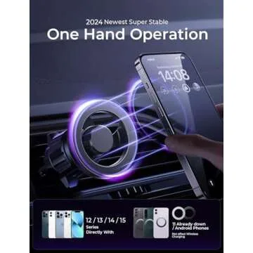 Show moreIntroducing the LISEN for MagSafe Car Mount Magnetic Car Phone Vent Mount, an innovative solution crafted specifically for drivers seeking convenience and style. Designed to harmoniously integrate with the latest iPhone models, including the iPhone 16, 15, 14, 13 Pro, Max, and Mini, this mount uses advanced magnetic technology that allows your device to effortlessly snap into place without blocking wireless charging. It’s not just a phone holder; it creates a personalized driving experience, letting you set the mood with easy access to navigation, calls, and music all while enhancing your car’s aesthetic.