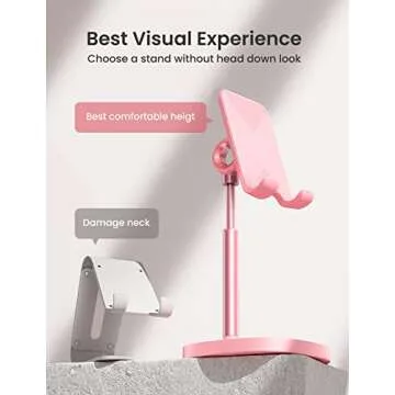LISEN Pink Kitchen Accessories Kawaii Pink Desk Accessories for Women, Vanity Decorand More Photogenic Pink Office Supplies Free Your Neck Height Angle Adjustable Room Decor for Women