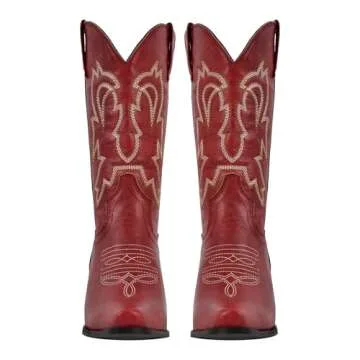 LISHAN Women’s Embroidered Chunky Block Heel Western Boots, Red