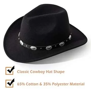 Lisianthus Men & Women's Felt Wide Brim Western Cowboy Hat Black