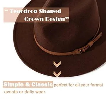 Lisianthus Men & Women Vintage Wide Brim Fedora Hat with Belt Buckle A-Coffee 59-60cm