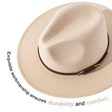 Lisianthus Women's Wide Brim Felt Fedora Retro Panama Hat with Belt Buckle (U-Shaped Buckle Creamy, M)