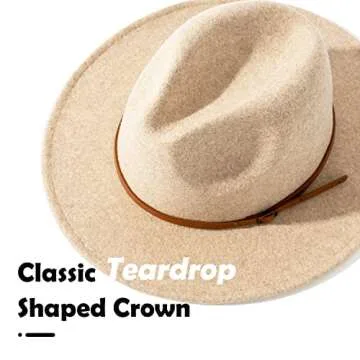 Lisianthus Women Wool Wide Brim Belt Buckle Fedora Hat A Brown Belt Beige