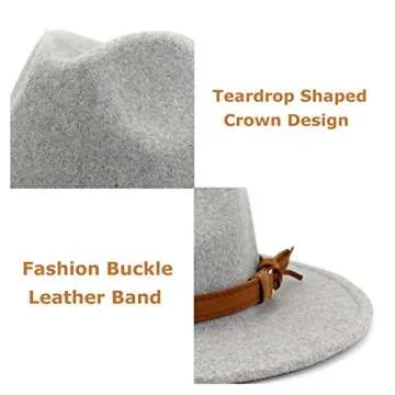 Lisianthus Womens Classic Wool Fedora with Belt Buckle Wide Brim Panama Hat A Brown Buckle-Light Grey