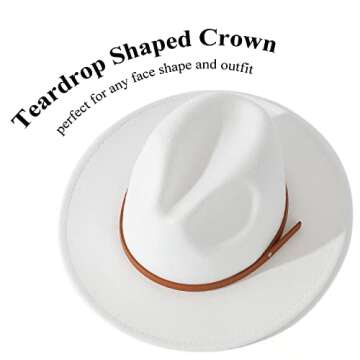 Lisianthus Womens Wide Brim Fedora Hat Felt Jazz Cap with Belt Buckle Decor Brown Belt-White M