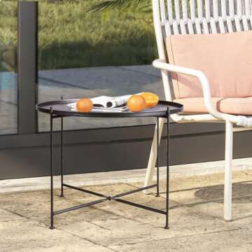 Lisuden Sofa Round Side Table,Tray Metal End Table,Folding Accent Coffee Table,Waterproof and Anti-Rust Outdoor&Indoor Snack Table,(H) 21.65'' x (D) 27.6'',Black (Black)