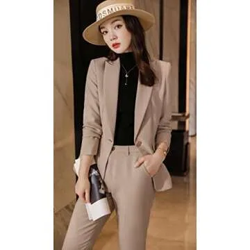 LISUEYNE Women’s Two Pieces Blazer Office Lady Suit Set Work Blazer Jacket and Pant (YY06-Khaki, X-Small)