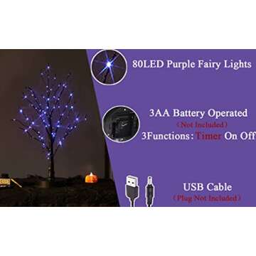 The LITBLOOM Lighted Halloween Tree can be powered by either 3 AA batteries or a USB plug-in, giving you versatile options for setup.