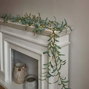 Show moreElevate your living environment with the splendid LITBLOOM Lighted Olive Garland, a 6FT masterpiece that promises to turn any room into a sanctuary of elegance. Engineered for enthusiasts of minimalism, this garland is beautifully adorned with 96 warm white fairy lights, promising a soft, inviting glow perfect for creating an intimate ambiance all year round. Whether you are decorating for the festive season or simply enhancing your home’s decor, this carefully crafted garland marries nature and aesthetics seamlessly with its lush grey-green olive leaves.