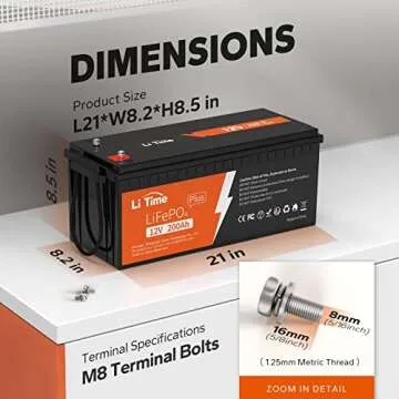 Introducing the LiTime 12V 200Ah PLUS Lithium LiFePO4 Battery—the pinnacle of power storage technology specifically designed for enthusiasts of RVs, solar power systems, marine applications, and off-grid living. Crafted from automotive-grade LiFePO4 cells, this battery provides unmatched quality and reliability. Featuring a built-in 200A Battery Management System (BMS), it safeguards against common issues such as overcharge, over-discharge, short circuit,...
