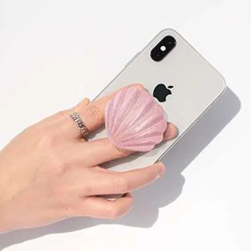 Show more Introducing the Lito.Dito Cute Glitter Shell Shape Expandable Collapsible Mobile Phone Grip Stand Holder - the perfect accessory for the style-savvy smartphone user! This delightful phone grip not only enhances your device's usability but also adds a pop of personality with its dazzling pink glitter shell design. Crafted for functionality, it features a versatile expandable and collapsible mechanism that allows for comfortable one-handed use of your smartphone or tablet. No longer will you struggle to take selfies or text comfortably; this grip ensures you have a secure hold, making it ideal for busy lifestyles!