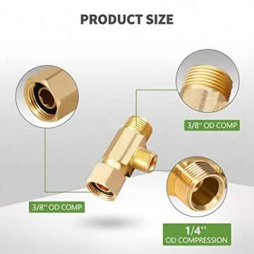 Litorange Lead-Free 2 PCS Brass Angle Stop Add-A-Tee Valve 3/8" Compression Inlet by 3/8" OD Compression Outlet by 1/4 Inch OD Compression Outlet