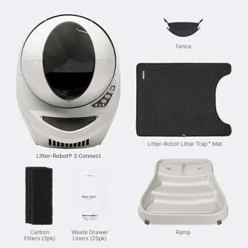 Litter-Robot 3 Connect Core Bundle by Whisker, Beige - Includes Automatic, Self-Cleaning Litter Box, LitterTrap Mat, Fence, Ramp, 25 Liners, 3 Carbon Filters & WhiskerCare 1-Year Warranty