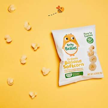 Show moreIntroducing a delightful and nutritious snack that’s perfect for your little one's exploration of new tastes! Our Yummy Banana Puff Corn is a scrumptious blend of organic ingredients designed specifically for babies and toddlers. Each bite-sized cloud melts in the mouth, making it ideal for safe self-feeding. As children from 10 months begin to assert their independence, this treat encourages them to enjoy snacks on their own, promoting fine motor skills while they munch. USDA Certified Organic, our recipes ensure that each ingredient has been meticulously selected for the safety and health of your growing child.
