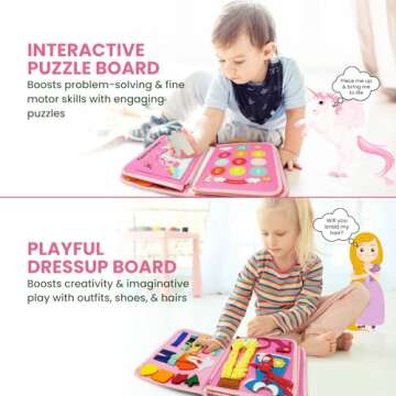 LITTLE CHILTERN Interactive Toddler Busy Book | Montessori Busy Board with Various Activities | Educational Montessori Sensory Book for Motor Skill Development | Portable Activity Board (Pink)