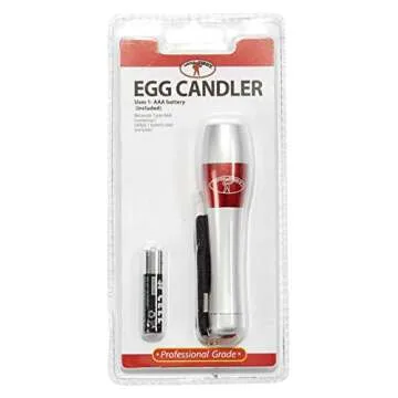 When comparing the Little Giant® Egg Candler with other egg checking tools on the market, several aspects set it apart. Many competitors provide bulbs that require an electrical outlet, leading to undesired inconveniences. Additionally, the lightweight and compact nature of this model allows for effortless use, especially in challenging spaces, where larger models can be cumbersome. Battery versatility and the wrist strap feature are often lacking in other products, contributing to its higher safety standards and usability.