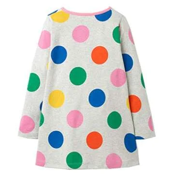 Show more Get ready to add some cheer to your little girl’s wardrobe with the Little Girl Casual Long Sleeve Dress. Made from soft, breathable cotton, this adorable dress is perfect for playtime, family gatherings, and holiday celebrations. With its vibrant, colorful dot pattern, and a charming pocket detail, this tunic dress effortlessly combines fun and function. The long sleeves provide warmth and comfort for those chilly winter days while adding an extra layer of cuteness, ensuring your little one steals the spotlight wherever she goes. Ideal for size 6, it is designed with a relaxed fit to allow for easy movement, making it a versatile piece for any occasion.