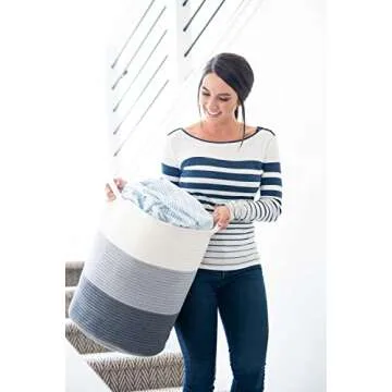 Little Hippo 2pc Extra Large Cotton Rope Basket (18"x16") 100% Natural Cotton! Laundry Basket, Woven Storage Basket, Large Basket, Blanket Basket Living Room, Toy Basket, Pillow Basket, Gray