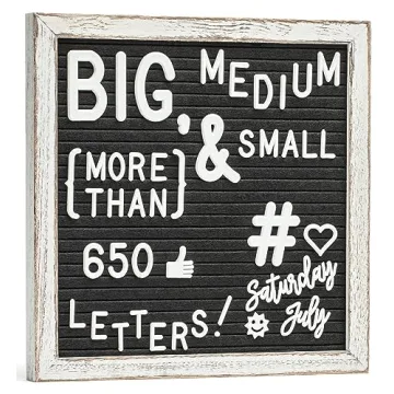 Show more Introducing the stunning Little Hippo Black Felt Letter Board Sign, an 10x10 inch canvas for unbounded creativity and expression! Perfectly crafted from rustic wood, this gorgeous letter board is designed to elevate your communication, whether for personal milestones, classroom announcements, or whimsical quotes. With an awe-inspiring collection of over 690 multi-sized letters and symbols, including small, medium, and exciting two-inch characters, you’ll experience the joy of creating diverse displays that resonate with your audience. Each piece is crafted with high-quality materials, emphasizing durability while retaining a charming aesthetic that complements any home, office, or café decor.