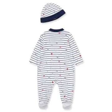 Welcome to the world in style with these lovely footie pajamas, which include a matching baby hat to complete the look. This set is a classic and precious choice for a baby shower gift, allowing parents to focus on snuggles and bonding instead of wardrobe concerns. With features like a head-to-toe zip up onesie, diaper changes become easy-breezy, keeping moms and dads stress-free and ready for more cuddles with their little ones.