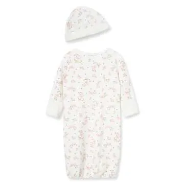 Little Me Baby Girl's 2-Piece Nightgown and Cap Set, Vintage Rose, 0-3 Months